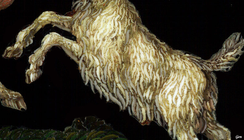 ローマン・マイクロモザイク ブローチ 「戦う牧神と山羊」 モザイクガラス、オニキス、ハイキャラット・ゴールド タテ4,8cm×ヨコ6cm イタリア 19世紀初期 Sold 微妙なグラデーションカラーのガラスを、まるで細い筆で描いた絵画の様に立体 的に、表現しているこのモザイクは、<比類無き芸術>と言えるでしょう。 人の手と感覚による表現は果てしなく、モザイクにおいては、この時代の頂点を 極めたとも言える研ぎ澄まされた作品です。 見れば見るほど吸い込まれるような緻密さと完全な配色による陰影は、パンと山羊の躍動感がより豊かにし、今にも踊り出しそうですし、 特に、山羊の毛並みの表現の美しさは素晴らしく、白からグレー、ベージュの難しい配色をこの小さな世界に余すところ無く表現されています。 拡大画像を見ても驚きを隠せませんが、数メートル離れたところからでも、この モザイクの立体感と奥深さは伝わってきます。 本当に良い物は、遠くからでも光を発し、見る人の心を打つものなのでしょう。この作品は同時代のミクロモザイクの作品と比べても、その芸術性において圧倒的な差があるのです。それは当時の名画を再現した物とは違って、古代ギリシャのイメージで制作されたオリジナリティーを感じるからです。この作品の為にモザイクガラスから作っているところが素晴らしいのです。そして このアンピール様式(ナポレオン1世様式)の格調高いフレームは、金が非常に高価であったにもかかわらず、厚みのある金の板から古代ギリシャ風の模様を深く鋭く彫りだしているのです。このモザイクが最も美しく見える理由は、プレーンなローマ風モチーフを使った 職人技だけのモザイクではなく、その時代のアーティスト(画家や彫刻家)がオリジナルのデッサンを起こし、モザイクガラスの色を造るところから、関わり、 最後まで職人に指示していると考えられるほどの、ガラス色の微妙さと美しさです。 また、物を見る力が備わった芸術家のデッサン力の素晴らしさが、この構成のバ ランスの良さをみれば判ります。 数え切れないほどの色で陰影を出すことが、奥行きをバランス、光と影の演出を 行い、このモザイクを一つのアートをしていることは、拡大画像を見ていただけ れば明らかでしょう。素晴らしいモザイクと素晴らしいフレーム、もう言うこと無しの作品です! |