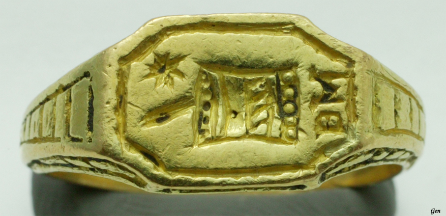 ← シグネットリングは印鑑として使う為に作られた指輪です。 モチーフは薬品を調合する時の乳鉢と撹拌棒と思われる物で、何故か星、それにイニシャルBMです。 モチーフの乳鉢と撹拌棒は持ち主の職業でしょうから、科学者か医療に携わる人物かなと推測しています。 |