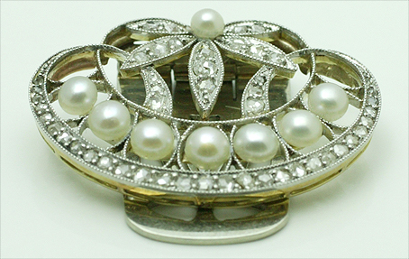 エドワーディアン 天然真珠 クリップ・ブローチ 照りの良い上質の天然真珠と繊細精緻なオウラチナワークは、天然真珠が最も人気があって高価だったエドワーディアンのジェリーならではのものです!♪ これは20世紀初頭から人気が出て来るクリップとして作られていますが、金具を外して蝶番の部分を使ってバチカンを付けてれば、素敵なペンダントとして楽しんで頂けます。加工代は見積もりをお出ししますが、僅かな費用で出来ると思います。