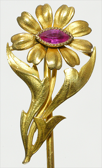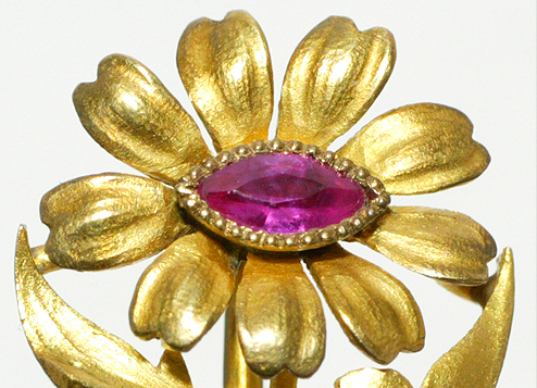 マーガレット ピン・ブローチ フランス 1890〜1900年頃 マーキーズカット・ルビー、18K 全長7,3cm モチーフ 1,9cm×1,3cm 重量2,8g |