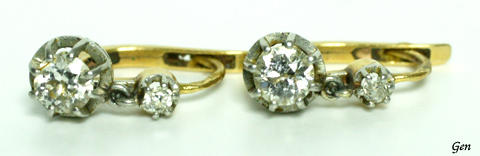 エドワーディアン ダイヤモンド ピアス フランス 1900年〜1910年頃 オールドヨーロピアンカット・ダイヤモンド プラチナ&ゴールド 長さ1cm 重量3g |