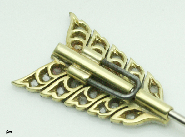 鏃の形も実に美しい! プラチナにゴールドバックですが、普通の物だとプラチナの部分がもっと薄いのですが、これはむしろプラチナの部分が厚いぐらいです。 これもハイクラスのジュエリーとして作られたってことなのです! |