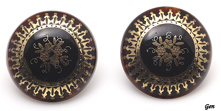 ピケ イヤリング イギリス 1860年頃 鼈甲、金銀象嵌、 直径2,1cm 重量4,9g Sold 仮予約はメールかフリーコール0120-974-384 でどうぞ。 後で付けられたネジ式のイヤリングの金具が付いていますが、18Kのピアス金具をお付け致します。(費用は別途掛かりますので見積もりをお出しいたします) 耳にぴったり付ける使いやすいタイプ |