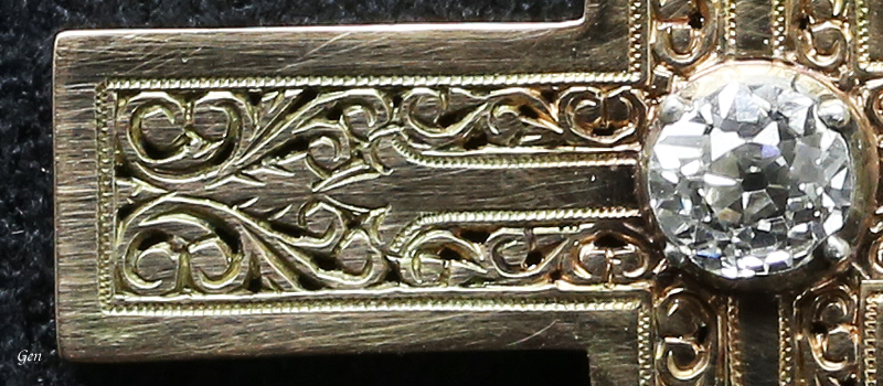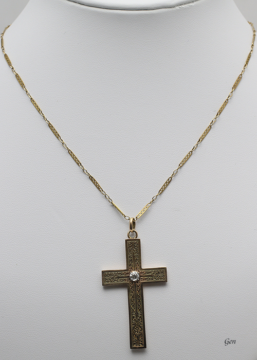 繊細で美しい透かしのゴールド クロス ペンダント イギリス 1880年頃 オールドヨーロピアンカット・ダイヤモンド、18ctゴールド オールハンドメイドの美しいゴールドチェーン付き(42cm) 4,5cm×2,7cm(本体のみ) Sold ※詳細は後日書きます。 |