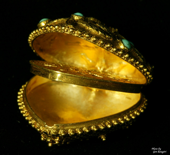 内蓋を開けた画像を見ると、見えない部分まで完璧に綺麗に仕上げてあるのがお解り頂けると思いますが、これがアンティークジュエリーの優れた物の証なのです。 それにハートの形が平面的な物ではなく、とても綺麗な丸味を帯びた立体的な形に作ってある事もお解り頂けると思います。