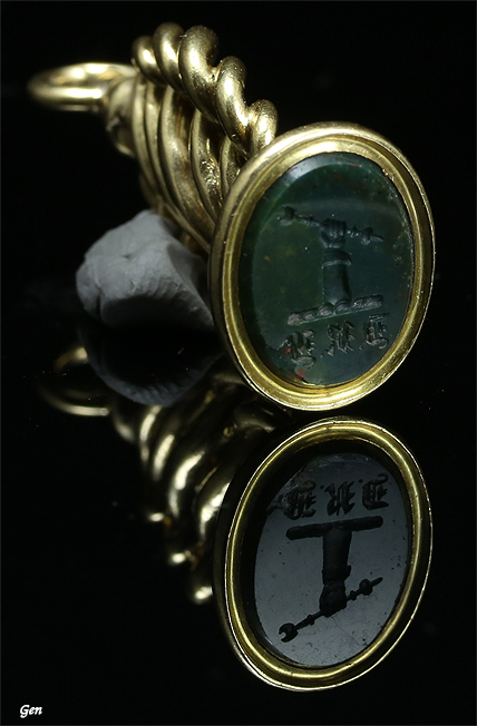 ジョージアン ハンドメイド ゴールド・シール(フォブ) 太い金線を八の字型に曲げた物を5個作り、鑞付けしているのですが、ジョージアンならではの面白い造形のシールです。 |