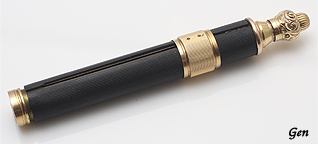 | 右側の彫金してあるノブを右に回すとシャープペンシルが出てきます。 左に回すと収納されます。 |