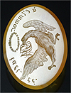 | 斑のある天然の石らしいアゲートは透明感があり、そこに浅いけれど巧みな彫りで躍動感溢れる鷲が彫られています!! 手に持って光の当たり方を変えながら見ていると、左の羽の先が半透明になり、石の斑が透けて見えるのが幻想的で美しいです。 |