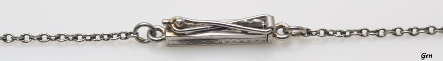 | セミハンドメイドの繊細且つしっかりした価値あるプラチナチェーン付きで、クラスプのハンドメイドのボックス型にはセーフティーが付いています。 |