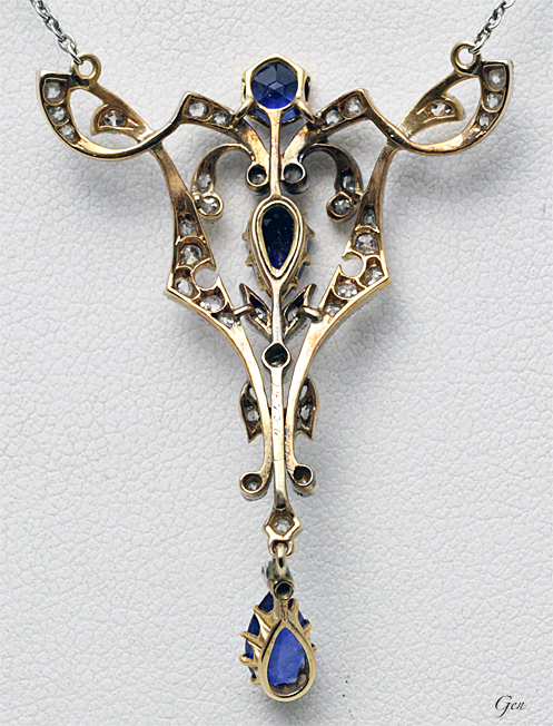 | エドワーディアン サファイア ネックレス イギリス 1910年頃 サファイア、オールドヨーロピアンカット・ダイヤモンド、プラチナ&18ctゴールド、 プラチナチェーン(モダン)の長さ39cm SOLD 美しいサファイア エドワーディアンらしい洗練されたデザイン 繊細精緻なミルグレーション プラチナにゴールドバックの完成度の高い作り 素晴らしいコンディション このネックレスはエドワーディアンの優等生と言える素敵なネックレスです!♪ |