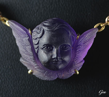 アメジスト エンジェル カメオ ネックレス イギリス? 1870年頃 アメジスト、ゴールド(金具18K) エンジェルの大きさ 2.5cm×1.7cm×1.0cm(厚み) 全長 39.0cm 重量 17.2g SOLD |