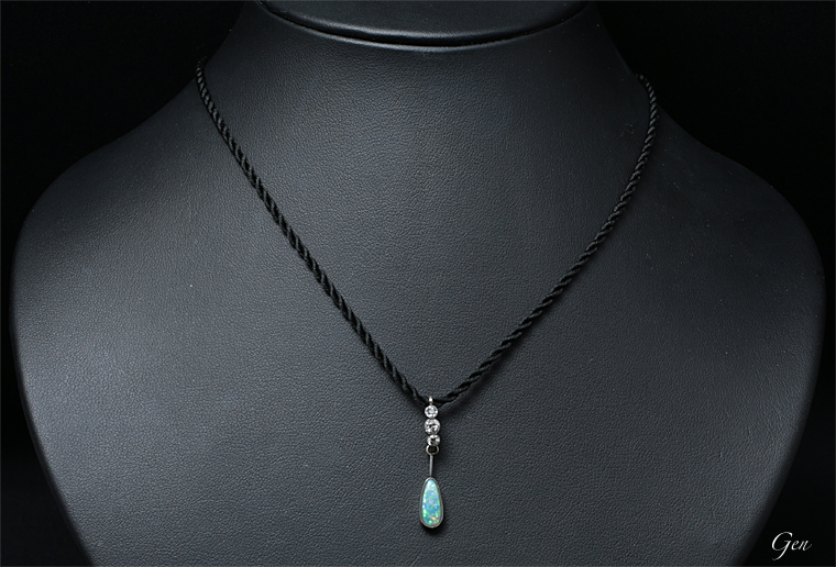 | 二つのオパールはどちらも上質のオパールならではの遊色効果が実に美しい石です!! 花びらの左右の曲線上の部分には、銀でありながら、プラチナ・ジュエリーのようなミルを打った素晴らしい細工です! |