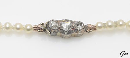 天然真珠、ローズカット・ダイヤモンド、シルバー、ゴールド