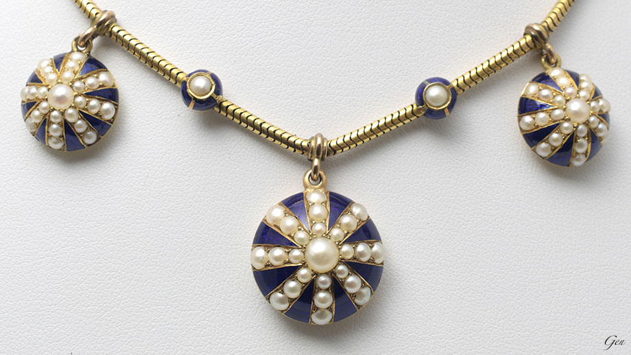 ギロッシュ・エナメル パール ネックレス アンティークジュエリー