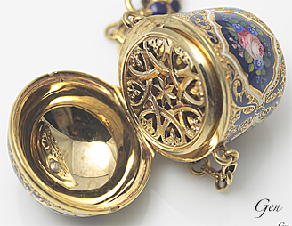 チェーンが交差する部分にエナメルの装飾がありますが、何とこの部分は裏も全く同じ作りです!♪ これは如何に贅を尽くした作りかの証なのです! |