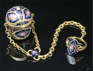 | 指輪のエナメルに少し傷はありますが、全体の美術的希少価値からすれば、充分許せるはんいのことです。 | |