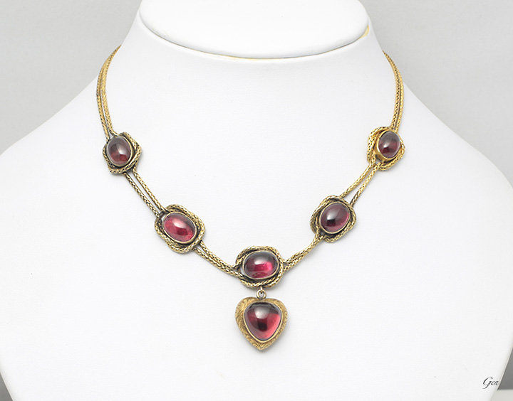 カボション ガーネット ゴールド ネックレス イギリス 1870年頃 チェーンの長さ40cm、ロケット 1.9cm、重量 26.8g ¥843,000-