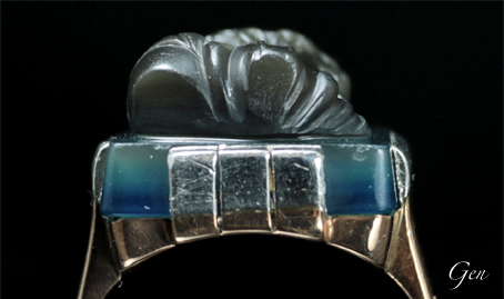 | 良い彫りですね〜!!♪ 石も見たことのない珍しいアゲートです!!(実物はもっと黒っぽい) |