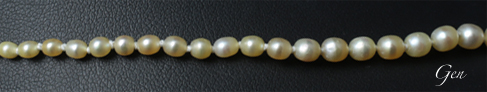 | 淡いクリーム色で色も形も揃えるのは天然真珠では大変なことなのです! 養殖真珠では染めたり脱色したりしているのだから、簡単に揃えられるの当たり前。 形は完全な真円ではなく、僅かに歪なのが天然真珠らしいと言えますね。 |