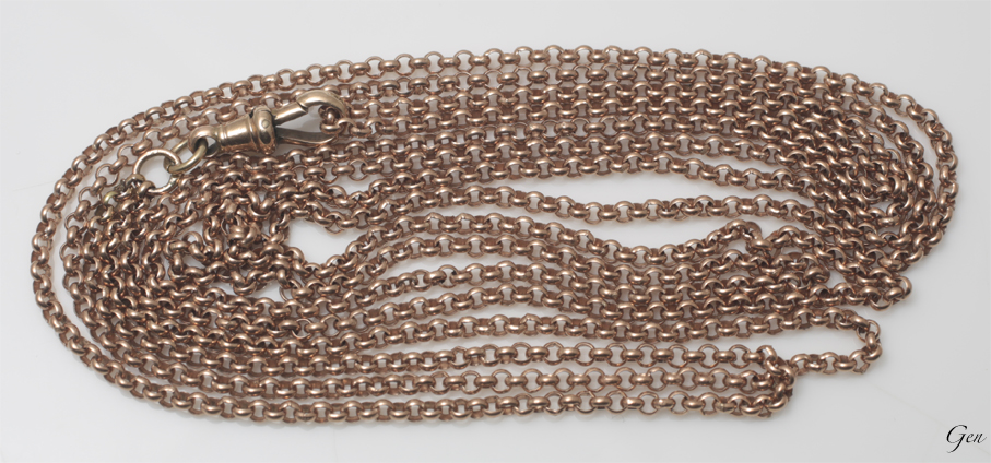 ゴールド スーパー ロングチェーン イギリス 19世紀後期 9ctゴールド 長さ 151cm 重量 24,9g Sold シンプルなロングチェーンですが、スイベルが付いているので、ルーペなどいろいろな物を下げて使えるので、使い勝手が良いのです!♪ 151cmと充分な長さが あるので、二連、三連、四連とバリエーションをお楽しみ頂けます!♪ コンディションはとても良いです!♪ この価格は今のポンド安を反映したすご〜くお買い得なプライスです!!♪ 9ctゴールドは長く使っていると若干の変色がありますが、金磨き専用布で軽く磨くだけで簡単に綺麗になりますので、実用的には何ら問題はありません( 金磨き専用布はサービスでお付けします。) 9ctゴールドは18ctゴールドより丈夫だという利点もありますしね。 |