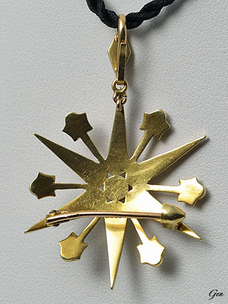 シードパール スター ブローチ&ペンダント イギリス 1880年〜1900年頃 シードパール(天然真珠)、15ctゴールド ブローチの時の直径 3.0cm ペンダントにしたときのバチカン含む縦 4.0cm 重量 5.6g Sold ヴィクトリア時代後期にとても人気のあった星形のブローチ&ペンダント!♪