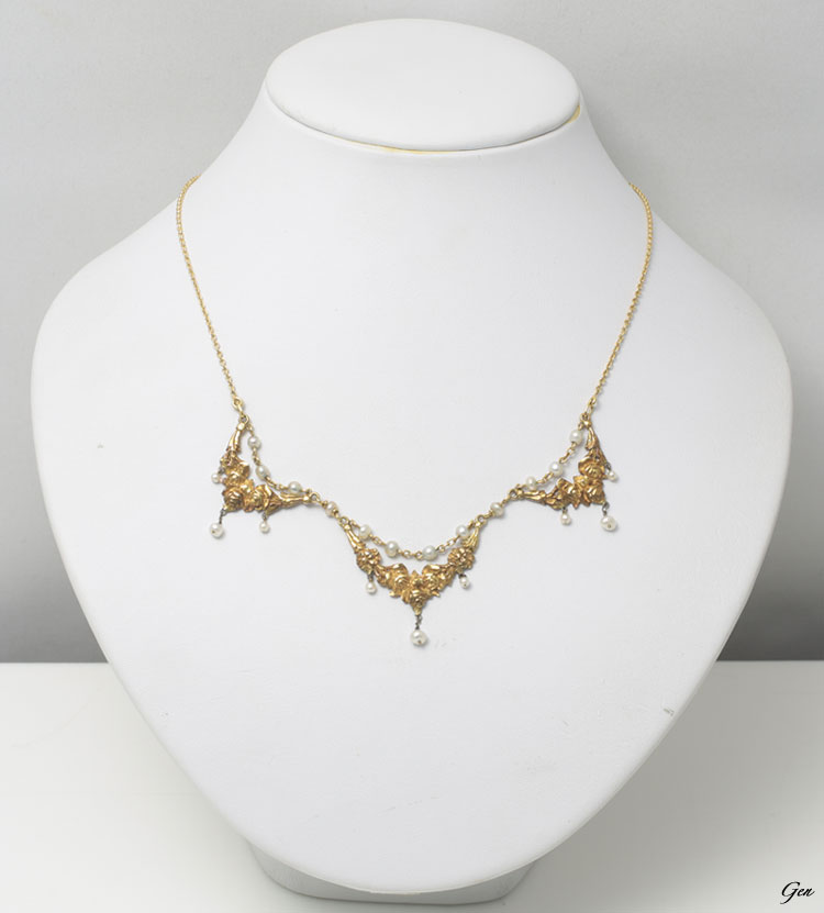 アールヌーボー ゴールドネックレス 『薔薇』 |