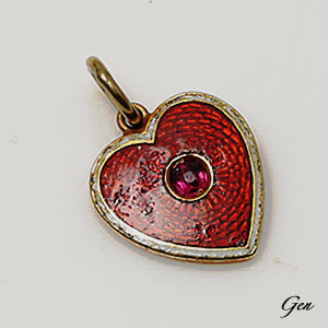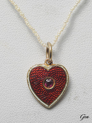 レッドギロッシュ・エナメル ハートシェイプ ペンダント (天然真珠ネックレス付き) |