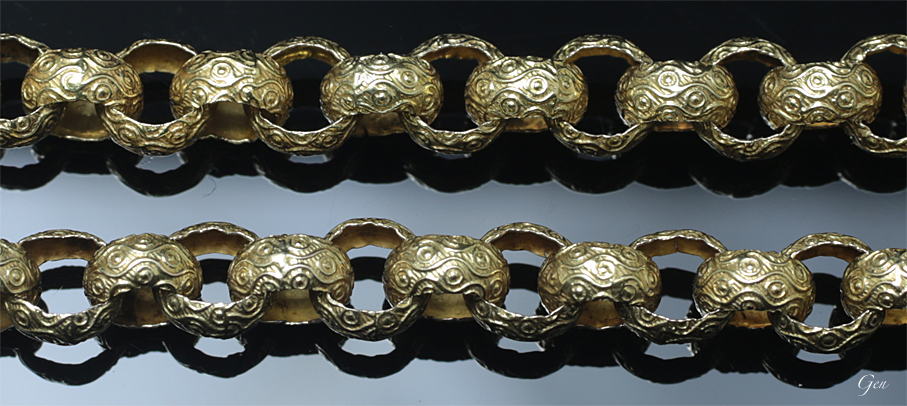 重さだけが取り柄の現代のマシンメイドと違って、金で薄い板を作ってパーツを一つづつ手作りで作ったチェーンなので、とても軽くて使いやすいのが魅力です!!♪