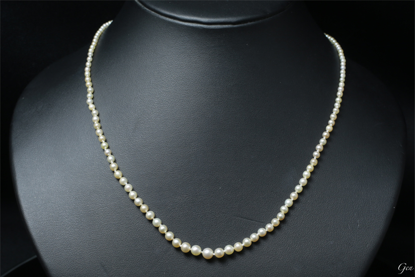 この天然真珠ネックレスは糸の状態からも、オールノットで最近糸交換されたネックレスなので安心してお使い頂けます。 真珠は天然真珠としては、形も色も揃っていて、現代の養殖真珠のような不自然な真っ白(薬品で脱色している)な珠とは違う、自然な美しさが魅力です!!♪ 普通の天然真珠ネックレスよりちょっと長めで、これだけ状態の良い美しいネックレスとしては、とてもお買い得なプライスだと思います!!♪ ***** 天然真珠と養殖真珠の違いについては、《知られざる天然真珠の魅力》をご覧ください。 |