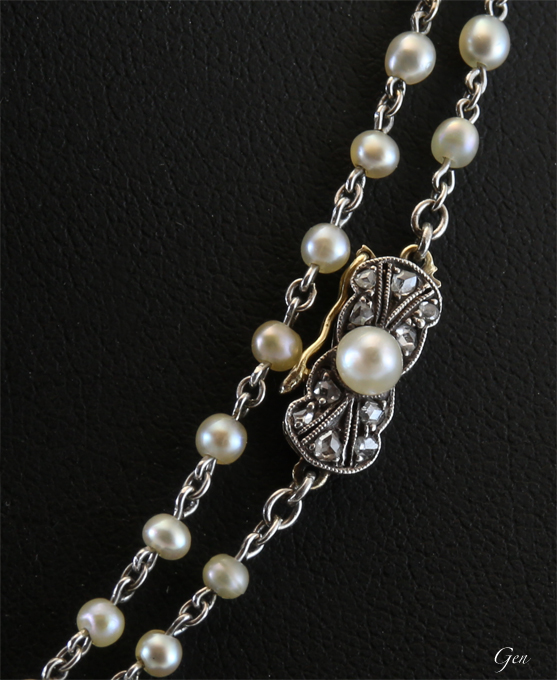 このクラスプはとても良いクラスプなので、左の画像のように正面から見えるように付けるとお洒落です!♪ このソートワールは84cmと使いやすい長さので、二連にしたり腕に巻き付けてブレスレットんとして使ったりとマルチユースが出来る優れものなんです!!♪ |