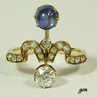 ロシアンリング 14金or15金 カボッションサファイヤ オールドヨーロピアンカットダイヤモンド ロシア 1900年頃 サイズ13 |