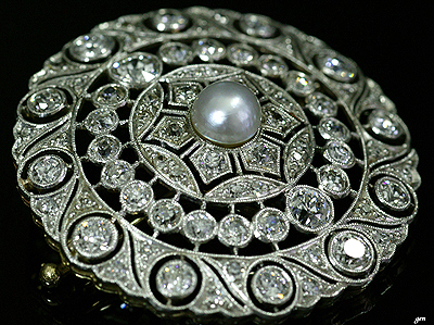 天然真珠とダイヤモンドの素晴らしいサーキュラー・ブローチ!!