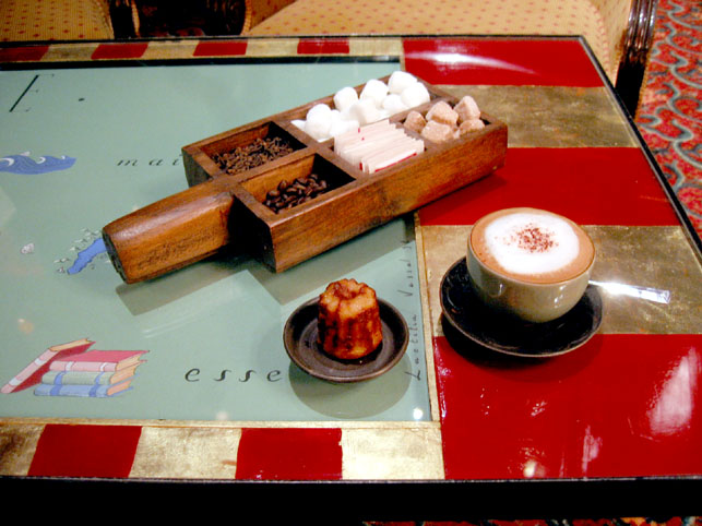 これは僕の定宿のラウンジのテーブルです。 アールデコのジャポニズムのデザインのテーブルに、 日本の古い器がよく似合っています。(茶碗は新物) ここはナポレオン?世時代に作られたパリで最も古いホテルのラウンジで、全体の照明をおとして小さなスポットランプだけの照明で、暗闇の中に浮かびあがるようなとても印象的なライティングが気に入っています。 金箔は使っていても、秀吉の成金趣味とはちょと違う!!(笑)