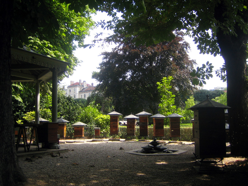 何やら屋根付きの木の箱らしき物が並んでる。何だろうと近寄ってみると「ブ〜ン!!」「あ、危ない刺される〜(@_@;)」。そうなんです、並んでる箱は蜜蜂の巣箱だったんです! しかしね〜、所変われば品変わるとは言いますが、蜜蜂の巣箱までちゃんとデザインされているんだから素晴らしい!アーティスティックな公園リュクサンブールだからなのか、フランス中の蜜蜂の巣箱は全部そうなのか知りたいところですね。 |